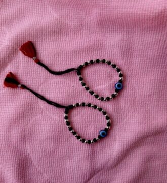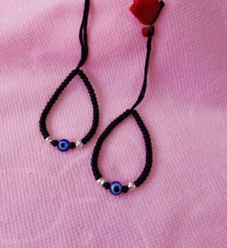 ₹838.95 Original price was: ₹838.95.₹720Current price is: ₹720.This traditional Child Nazariya Bracelet is crafted with soft black thread and fine silver bead accents, designed especially for children.