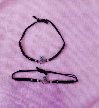 ₹3,414.60 Original price was: ₹3,414.60.₹2,930Current price is: ₹2,930.This kids evil eye and Om nazariya bracelet is thoughtfully designed to protect children from negative energy while inviting positivity and blessings. Featuring a blue evil eye charm and an Om symbol on a soft black adjustable thread, it is lightweight, skin-friendly, and comfortable for daily wear. A perfect blend of spiritual protection and simple…
