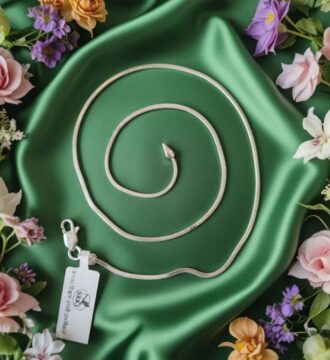 This elegant silver chain is crafted with precision to offer a perfect blend of simplicity and sophistication. Made from high-quality silver, it features a smooth, polished finish that adds a subtle shine and long-lasting durability. Designed for everyday comfort, this chain is lightweight yet strong, making it ideal for wearing alone or pairing with pendants….