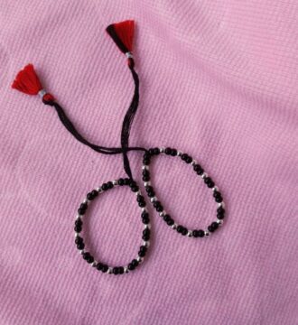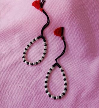 Original price was: ₹1,572.90.₹1,350Current price is: ₹1,350.This traditional Child Nazariya Bracelet is crafted with soft black thread and fine silver bead accents, designed especially for children.