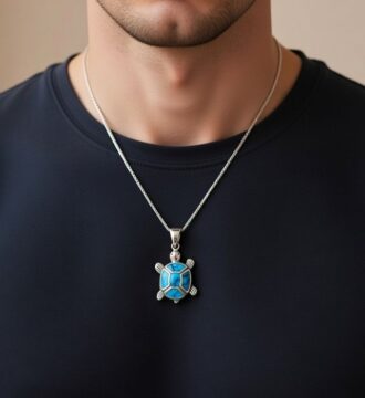 ₹3,226.65 Original price was: ₹3,226.65.₹2,927Current price is: ₹2,927.This sterling silver turtle pendant is a beautiful blend of symbolism and elegance, crafted in 925 sterling silver with a vibrant blue inlay. The turtle represents longevity, protection, patience, and good luck, making this pendant not only stylish but also meaningful. The smooth silver framework highlights the rich blue stone, giving it a fresh and…