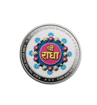 10 gram 999 pure silver Radha Krishna printed coin – perfect for puja, gifting & blessings.