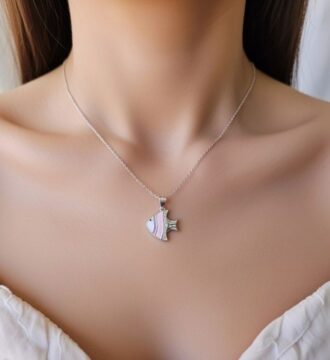 This elegant sterling silver fish pendant features soft enamel detailing and a graceful silhouette that symbolizes positivity, prosperity, and harmony. Lightweight and beautifully crafted, it is ideal for everyday wear and meaningful gifting.