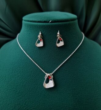 Add a touch of timeless elegance to your jewellery collection with this beautifully crafted silver pendant chain and matching earrings set. Designed with a modern yet graceful silhouette, the pendant features a delicate geometric pattern accented with subtle detailing that enhances its refined charm. The matching earrings perfectly complement the pendant, making this set ideal…