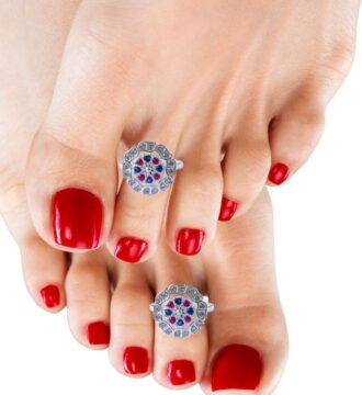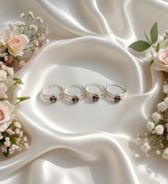 ₹3,812.55 Original price was: ₹3,812.55.₹3,453Current price is: ₹3,453.These beautiful silver toe rings (bichiya) are crafted from premium silver and designed with an elegant oval motif highlighted by rich red stone detailing and a sparkling halo finish. The polished silver band adds a graceful shine, while the adjustable open design ensures a comfortable and secure fit. Perfectly blending traditional charm with a modern…