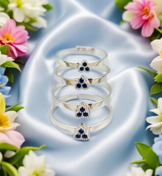 ₹1,472.10 Original price was: ₹1,472.10.₹1,331Current price is: ₹1,331.Enhance your traditional charm with these beautifully crafted silver toe rings, featuring a delicate triangular design accented with deep blue stones. Made from high-quality silver, these toe rings offer a smooth, polished finish and a comfortable adjustable fit. Perfect for everyday wear as well as festive and special occasions, the subtle blue stone detailing adds…