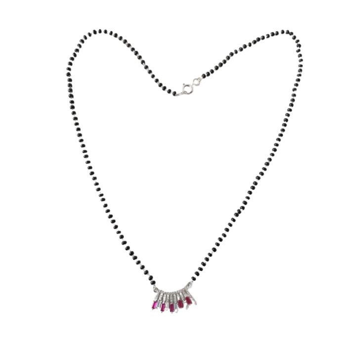925 Sterling Silver Mangalsutra with pink and white CZ fringe drop design. Lightweight, stylish, and perfect for daily wear or gifting.