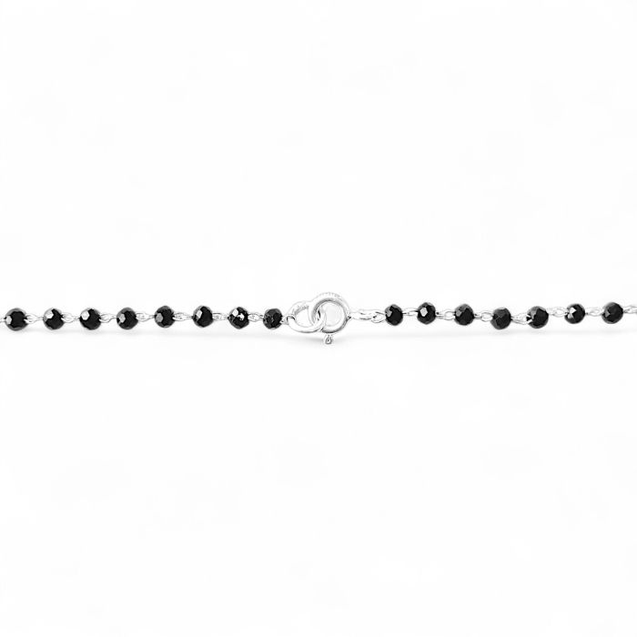 The beautifully structured pendant with fine detailing and a delicate drop element adds a luxurious and modern touch, while the classic black bead chain maintains its traditional essence. This perfect blend of tradition and contemporary design makes it suitable for both everyday wear and special occasions.