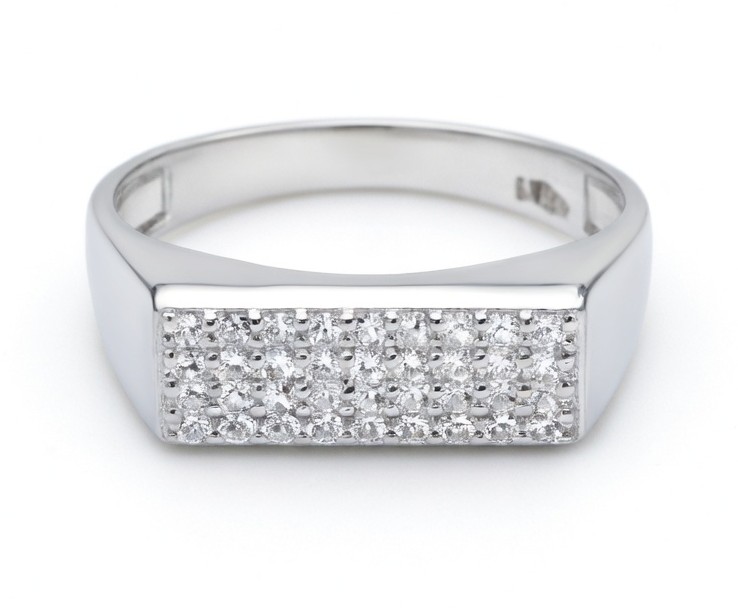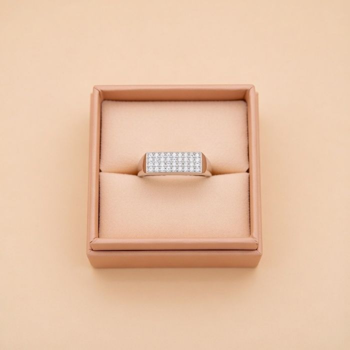 This classic silver ring features a sleek square panel design adorned with sparkling stones. Its bold yet elegant look makes it perfect for daily wear and special occasions.