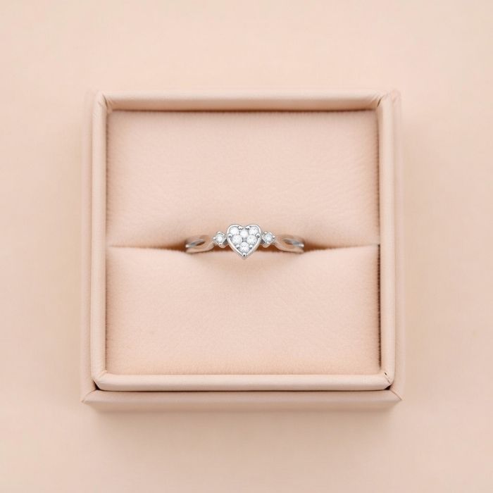 This elegant silver ring features a beautiful heart-shaped solitaire center accented with sparkling stones. Its minimal and romantic design makes it perfect for everyday wear and special occasions.