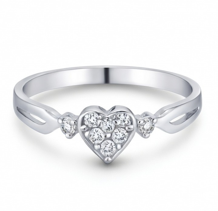 Elegant Heart Solitaire Silver Ring with Sparkling Stones