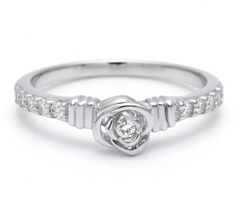 Elegant Rose Motif Silver Ring with Sparkling Stones