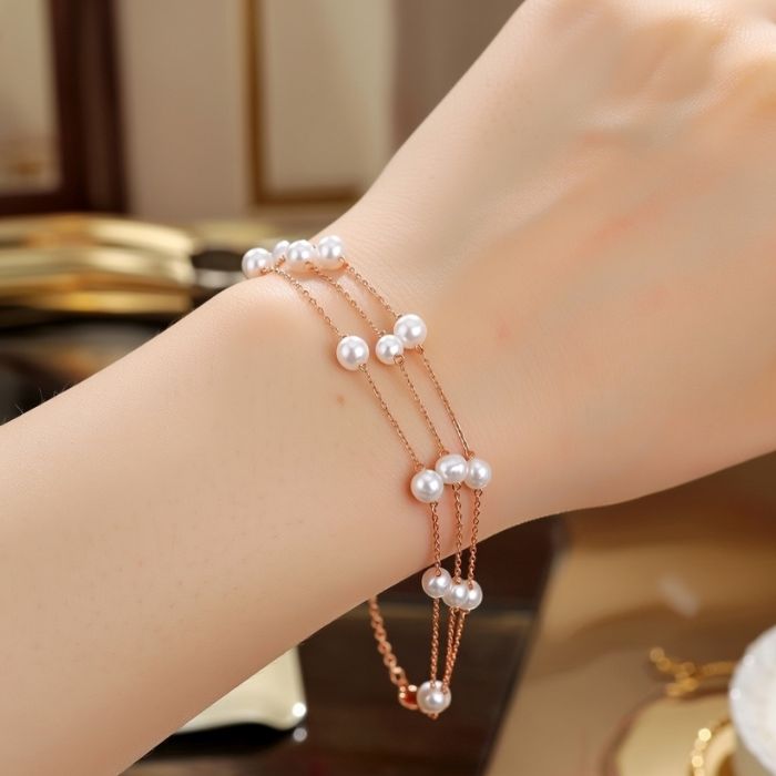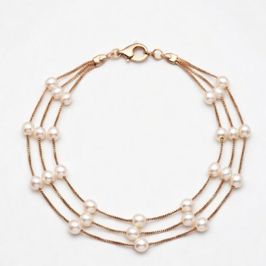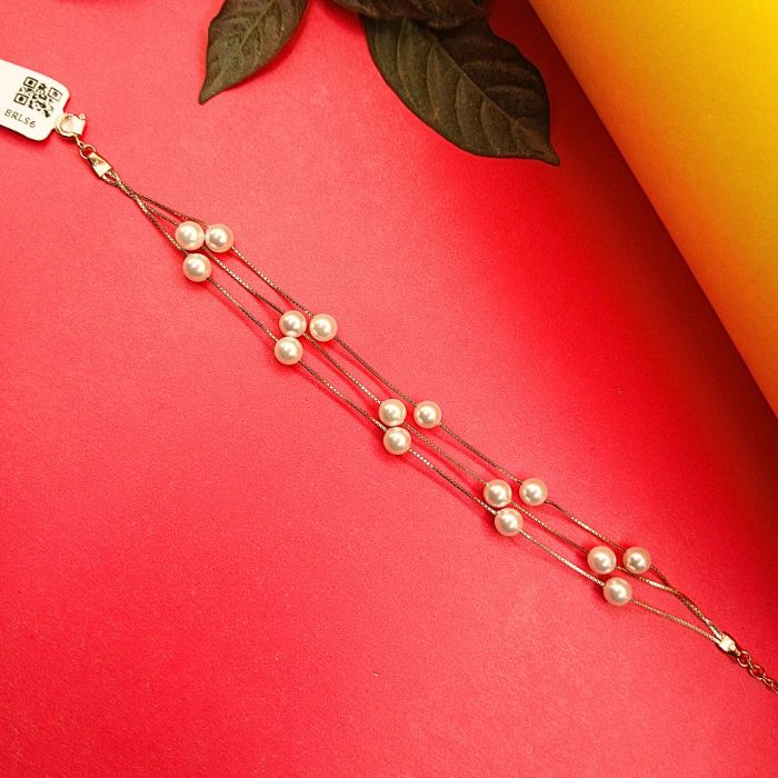Graceful silver bracelet adorned with multiple delicate pearl accents on fine layered chains. Elegant and lightweight, it adds a soft, classy charm to everyday and festive looks alike.