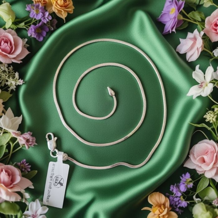This elegant silver chain is crafted with precision to offer a perfect blend of simplicity and sophistication. Made from high-quality silver, it features a smooth, polished finish that adds a subtle shine and long-lasting durability. Designed for everyday comfort, this chain is lightweight yet strong, making it ideal for wearing alone or pairing with pendants. Its timeless design suits both men and women, complementing traditional as well as modern styles. Resistant to tarnishing and gentle on the skin, this silver chain is a versatile jewelry essential, perfect for daily wear, gifting, or special occasions.