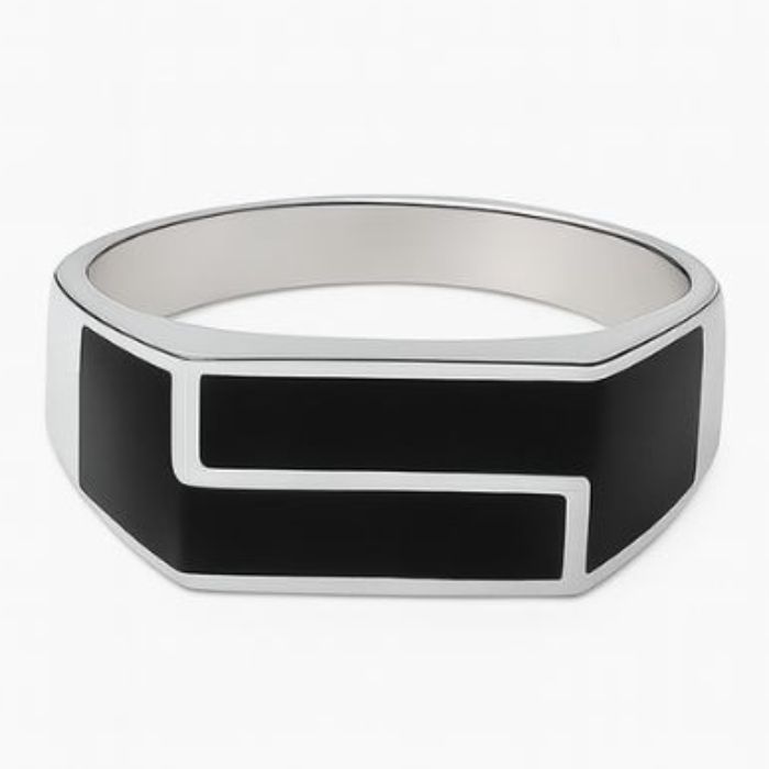 This contemporary silver ring features a sleek geometric design with a bold black inlay that creates a striking contrast against the polished sterling silver finish. Crafted from high-quality sterling silver, the ring offers excellent durability, smooth edges, and lasting shine. Its minimalist yet powerful design makes it a versatile accessory, perfect for everyday wear, office styling, or evening outings. The clean lines and modern aesthetic give the ring a refined, masculine appeal while ensuring comfortable wear throughout the day. Ideal for those who appreciate understated elegance with a modern edge, this silver ring also makes a thoughtful gift for birthdays, anniversaries, or special occasions.