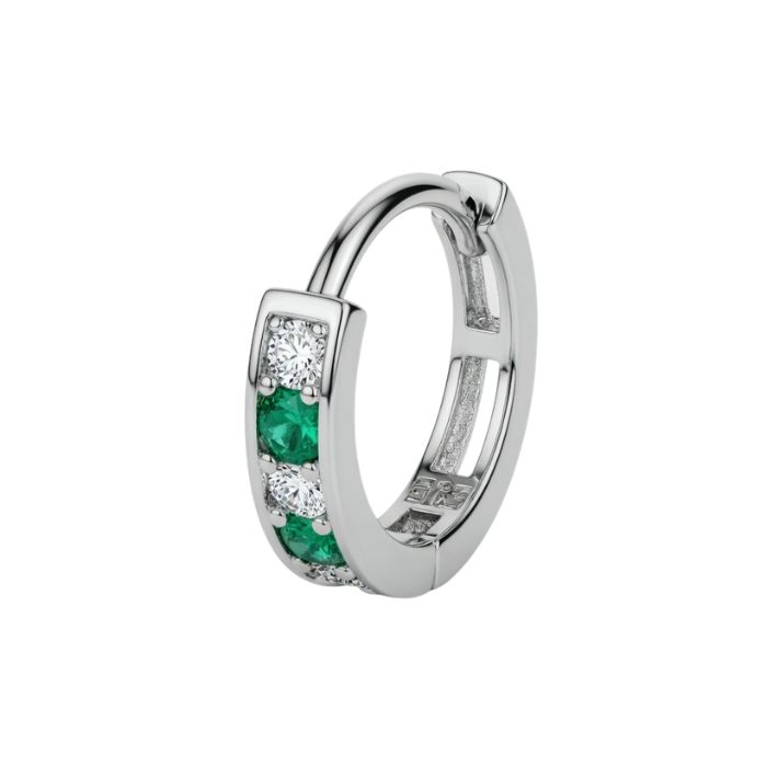 925 Sterling Silver Green & White CZ Hoop Nose Ring for Women