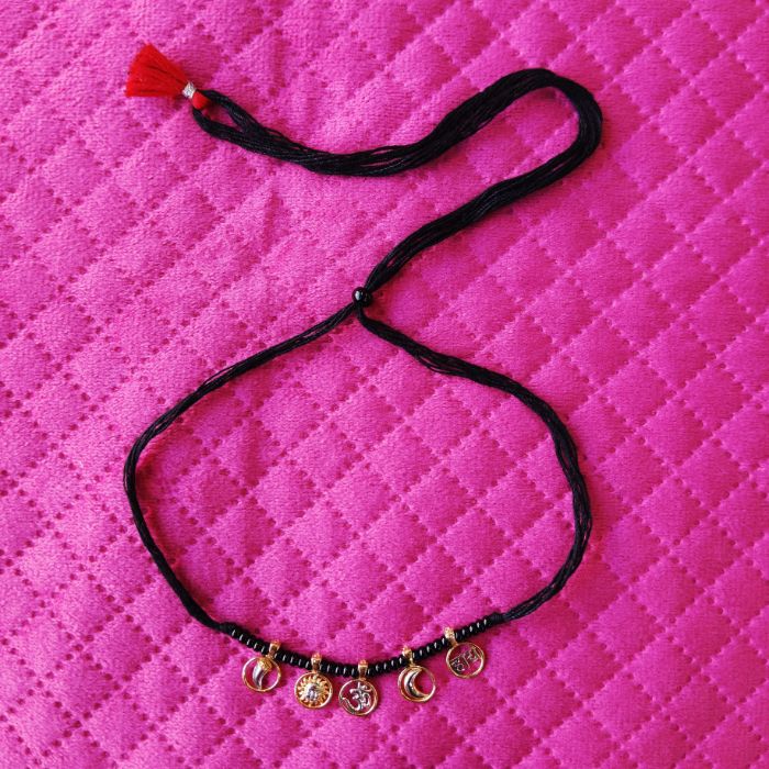This traditional kidsgold plated nazariya necklace is designed to be worn around a child’s neck for protection against negative energy and evil eye. Crafted with black beads and symbolic charms, it is believed to safeguard children from buri nazar while being lightweight and comfortable for daily wear.