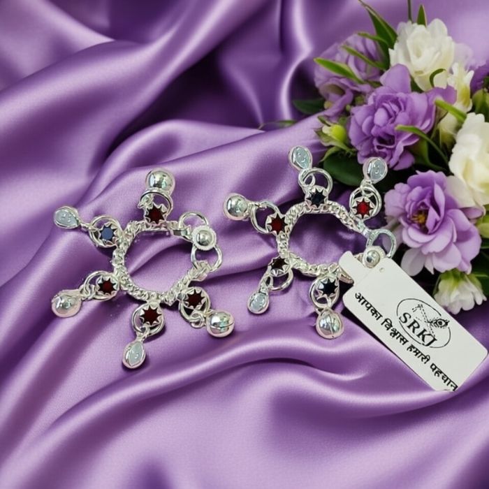 This beautifully handcrafted silver payal for Laddu Gopal Ji features delicate circular links adorned with tiny hanging ghungroo charms. Designed for divine shringar, it adds a graceful and traditional touch to Thakur Jiβs feet, perfect for daily pooja, festivals, and special occasions. πβ¨