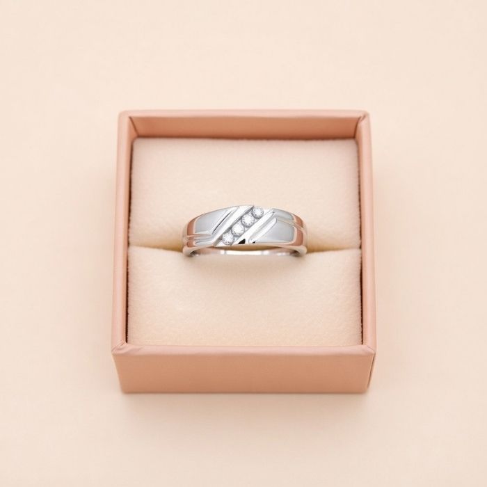 This modern silver ring features a stylish V-shape design highlighted with sparkling stones. Its sleek finish and contemporary look make it ideal for everyday wear and special occasions.