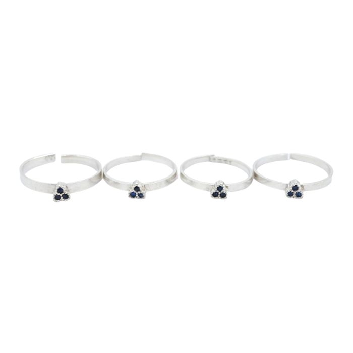Enhance your traditional charm with these beautifully crafted silver toe rings, featuring a delicate triangular design accented with deep blue stones. Made from high-quality silver, these toe rings offer a smooth, polished finish and a comfortable adjustable fit.