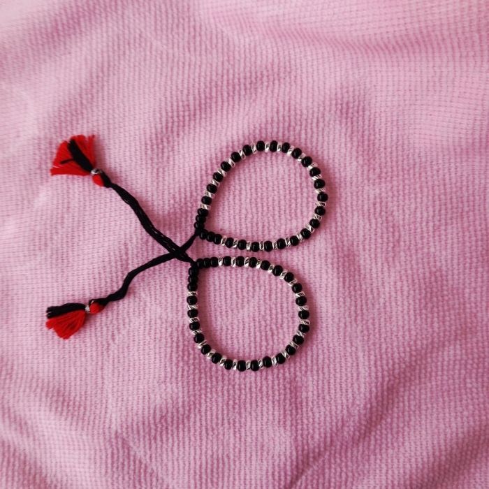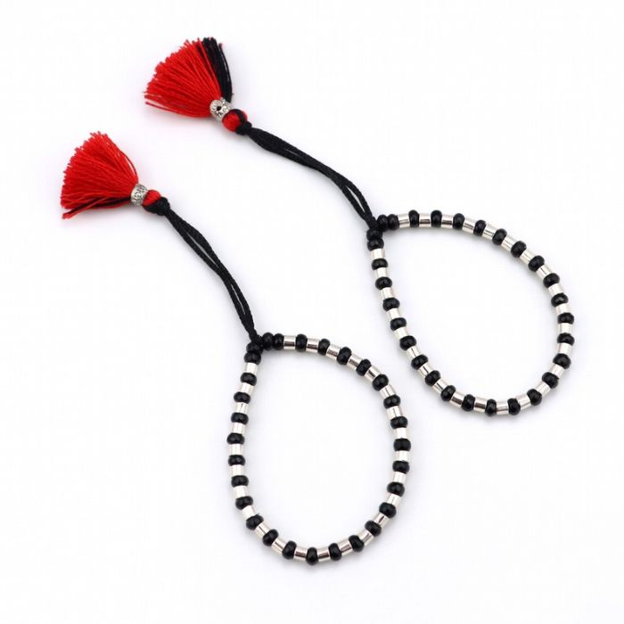This traditional Child Nazariya Bracelet is crafted with soft black thread and fine silver bead accents, designed especially for children.
