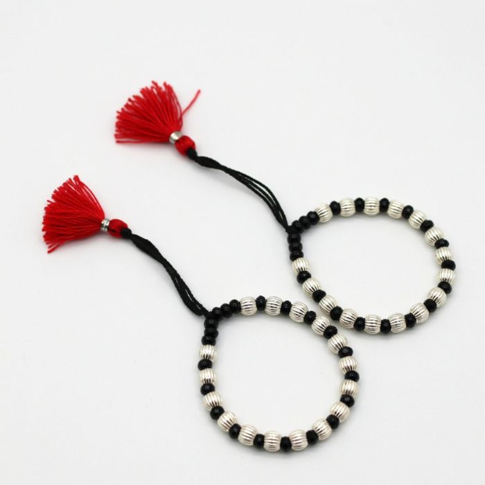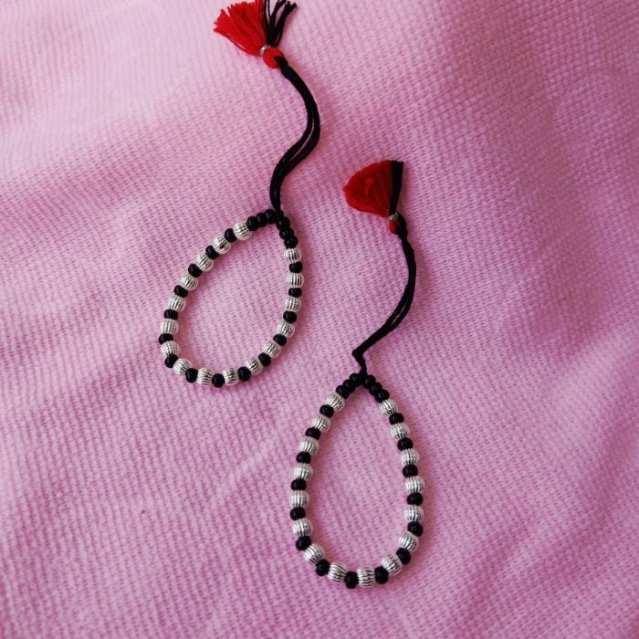 This traditional Child Nazariya Bracelet is crafted with soft black thread and fine silver bead accents, designed especially for children.