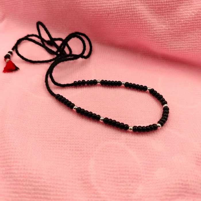 Silver Beaded Black Thread Child Tagdi