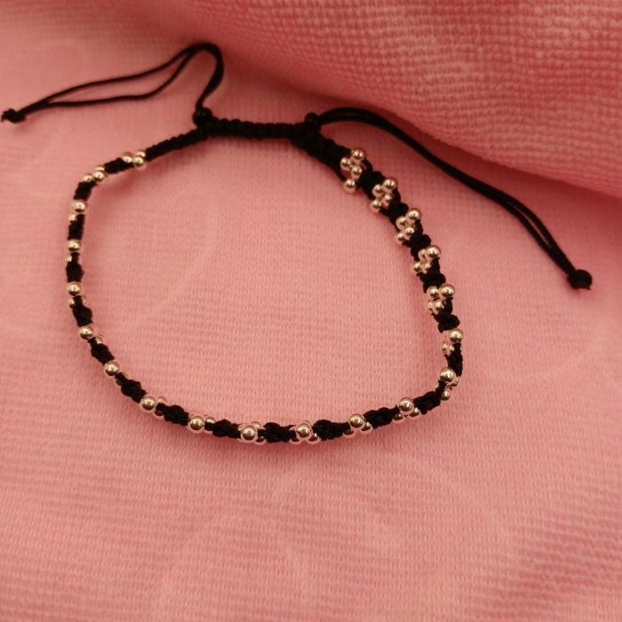 Silver Beaded Black Thread Women Anklet