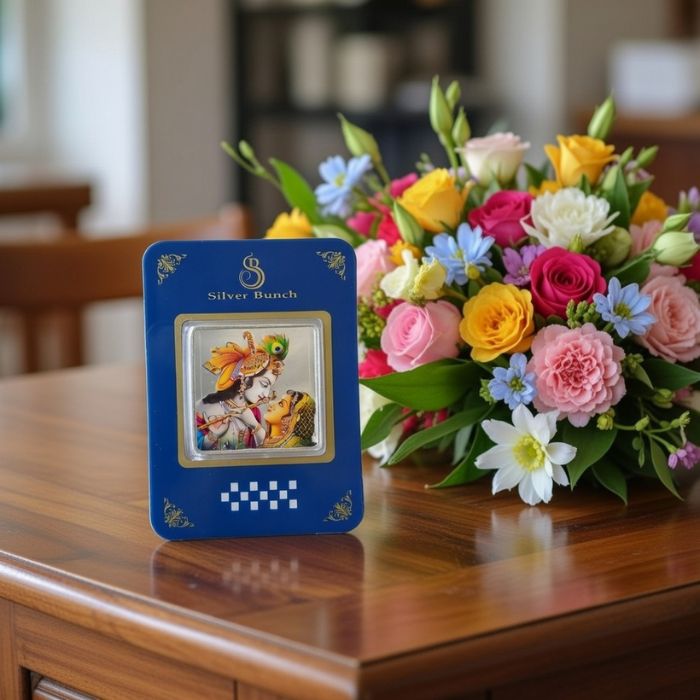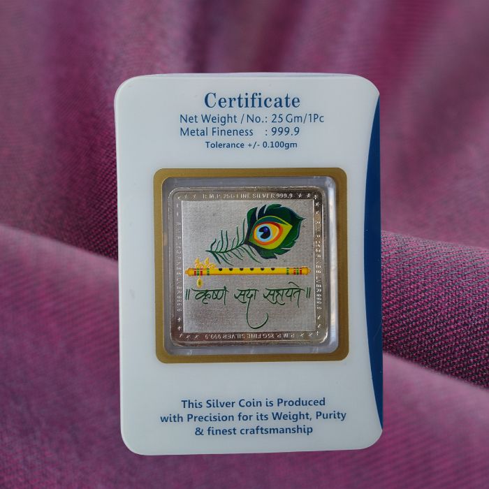 This Silver Bunch Pure Silver 999 Coin (25 Gram) is crafted from high-purity fine silver and beautifully designed with a devotional motif. A perfect choice for gifting, pooja, festivals, and special occasions, it combines spiritual significance with long-term silver value. Ideal as both a keepsake and an investment.