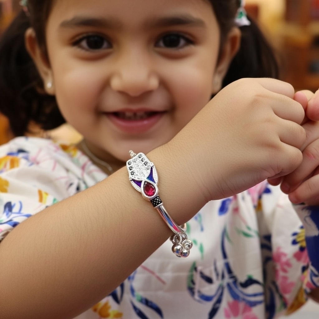 kids’ silver kada crafted with a smooth finish and charming detailing. Lightweight, skin-friendly, and safe for daily wear, perfect for little ones and ideal for gifting on special occasions. ✨