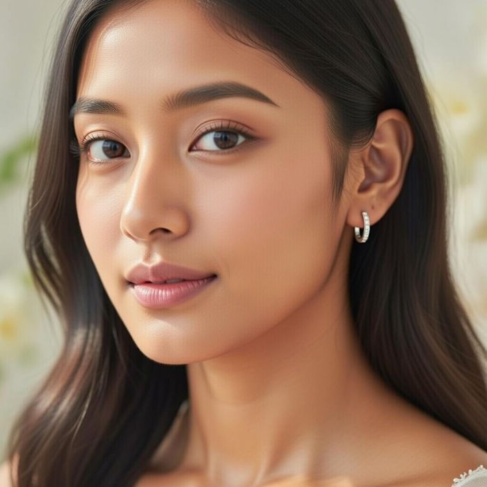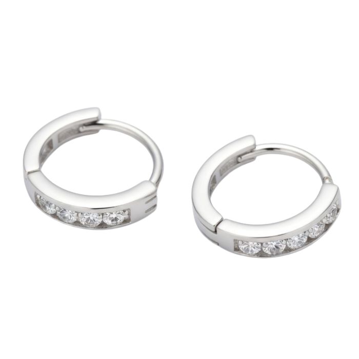 These elegant sterling silver hoop earrings feature a sleek, minimalist design accented with a row of sparkling stones for subtle glamour. Crafted from premium 925 sterling silver, they offer long-lasting shine, durability, and comfort for sensitive ears. The compact hoop size makes them perfect for everyday wear, adding a refined touch to casual outfits, office attire, or evening looks. Lightweight and easy to wear, they come with a secure clasp that ensures a comfortable and reliable fit throughout the day. The delicate stone detailing enhances their modern appeal without being overpowering. Ideal for women and girls, these hoop earrings also make a thoughtful gift for birthdays, anniversaries, festive occasions, or special moments.