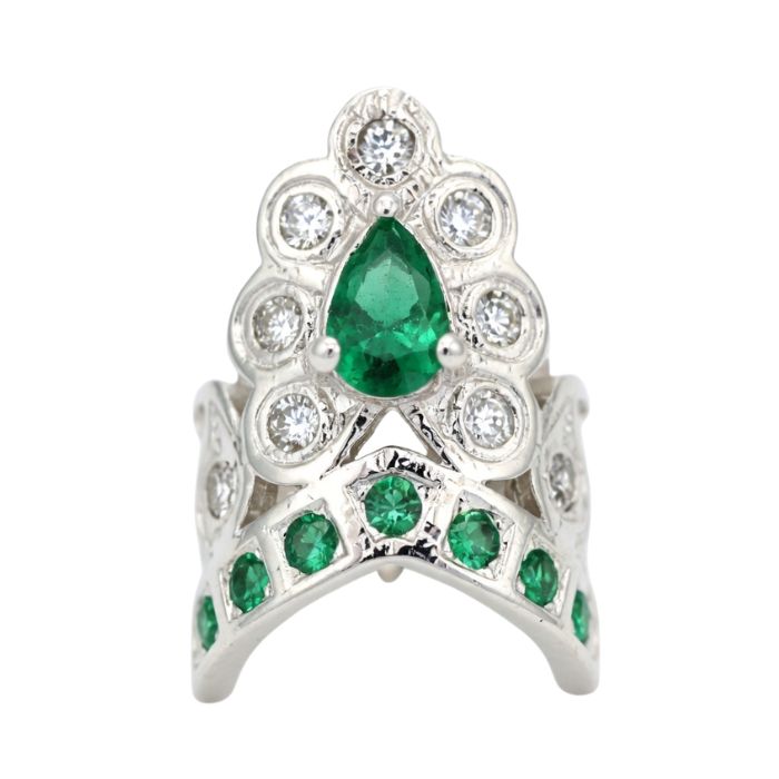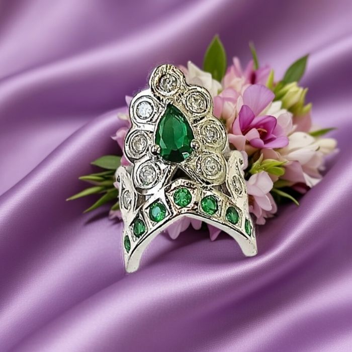 Silver Mukut (Crown) for Laddu Gopal Ji with Green Stone Work