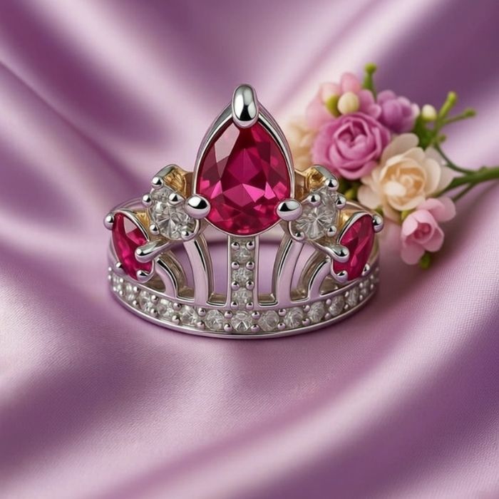 Silver Mukut (Crown) for Laddu Gopal Ji with Ruby-Tone Stone & CZ Work