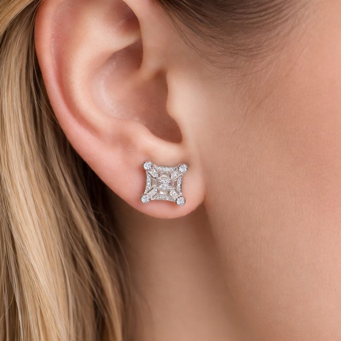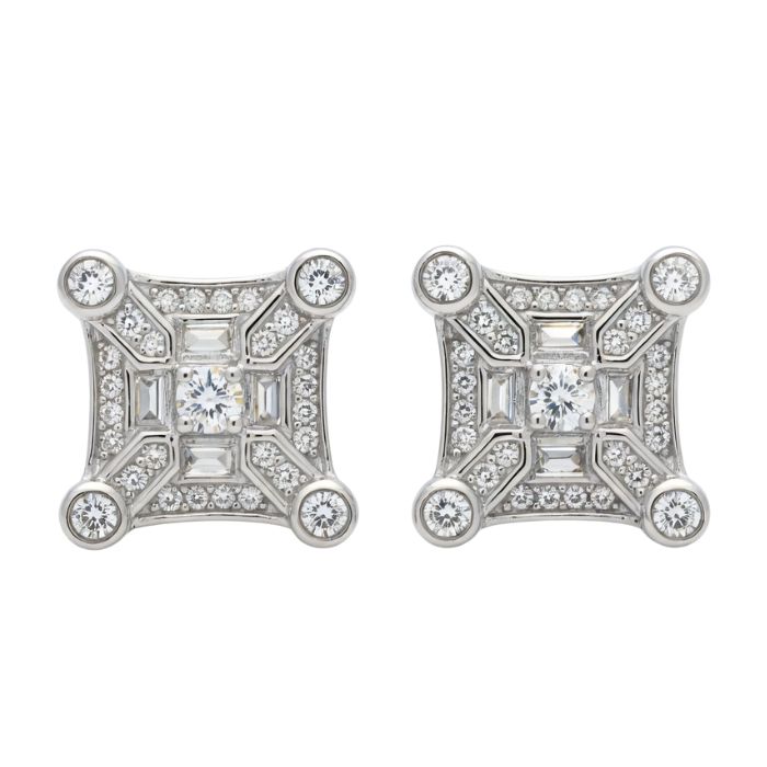 These elegant sterling silver stud earrings showcase a sophisticated square design with finely arranged sparkling stones for a luxurious, timeless appeal. Crafted from premium 925 sterling silver, they offer excellent durability, a radiant finish, and comfortable wear for sensitive ears. The layered stone setting reflects light beautifully, adding refined brilliance without being overpowering. Perfect for everyday elegance, office wear, or special occasions, these studs complement both modern and classic styles effortlessly. Lightweight and secure, they are easy to wear throughout the day. A graceful choice for women and girls, these earrings also make a thoughtful gift for birthdays, anniversaries, weddings, or festive celebrations, adding charm and elegance to any jewelry collection.