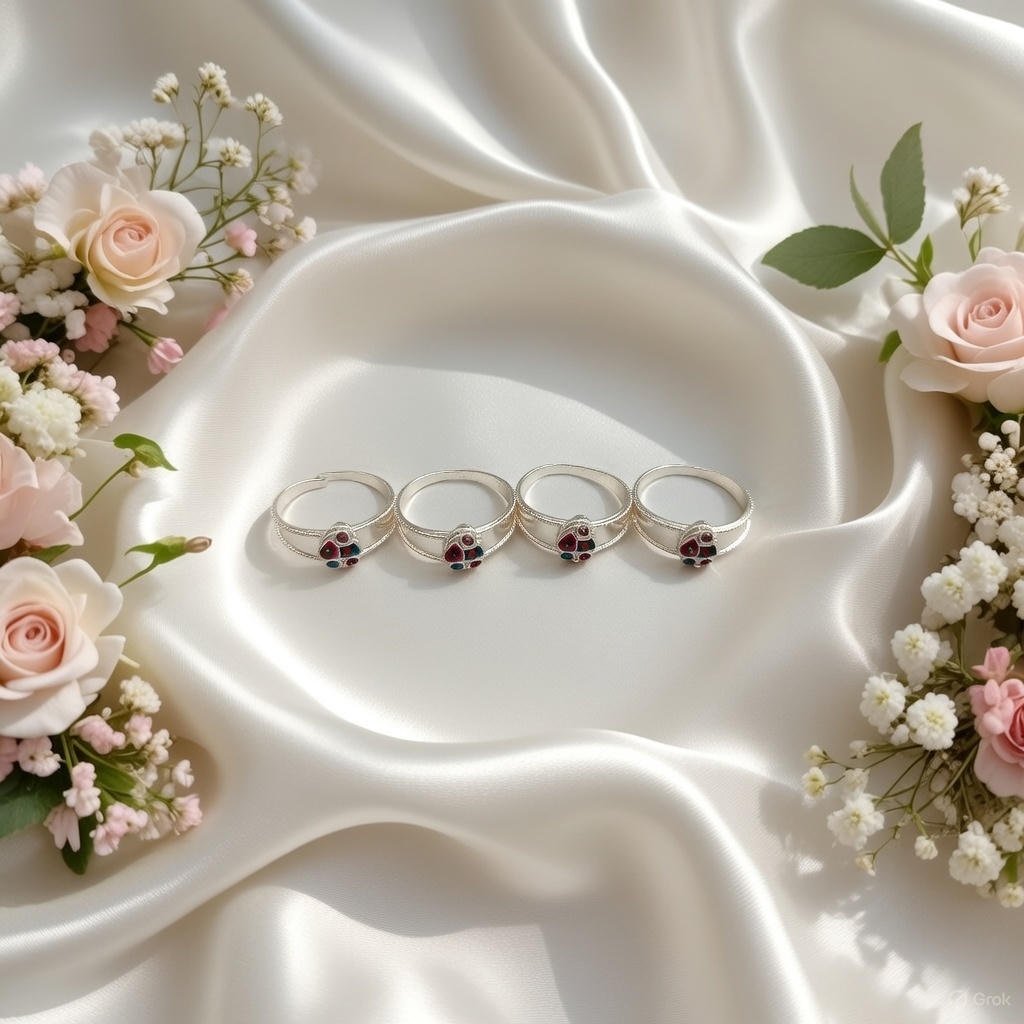 The combination of red, blue, and dark-toned stones creates a striking yet elegant appeal, making these toe rings perfect for festive occasions, daily wear, and special celebrations. A stylish accessory that beautifully blends tradition with contemporary charm.