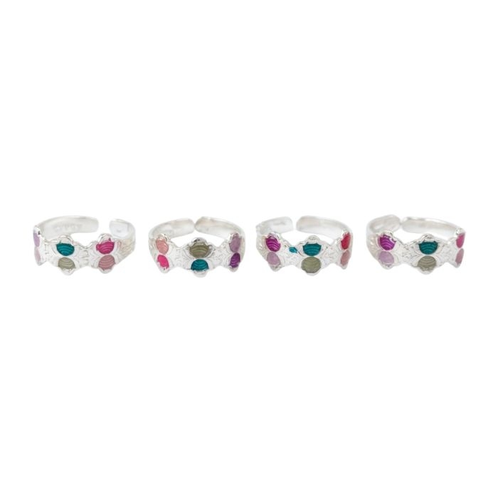 These elegant silver toe rings (bichiya) are beautifully crafted from high-quality silver and designed with charming multicolor stone accents that add a playful yet graceful touch. The smooth polished finish enhances their shine, while the adjustable open design ensures a comfortable fit for everyday wear. Perfect for pairing with anklets, these toe rings complement both traditional and modern outfits effortlessly. Ideal for festive occasions, weddings, or daily use, they reflect timeless Indian elegance with a contemporary twist. Lightweight, skin-friendly, and durable, these silver bichiya are a must-have accessory for women who love subtle color, fine detailing, and classic silver jewellery.