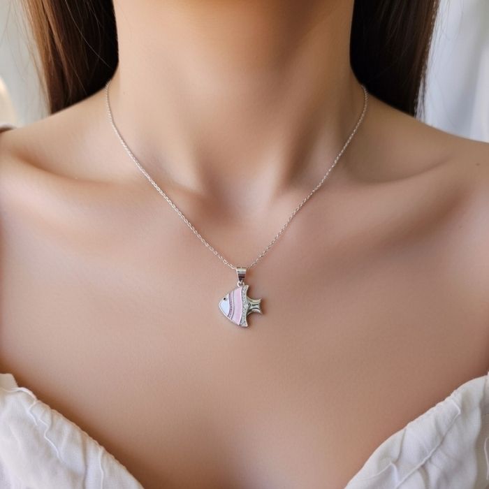 This charming sterling silver fish pendant features delicate enamel accents and a graceful design that symbolizes positivity, harmony, and good fortune. Lightweight and elegant, it is perfect for everyday wear or as a thoughtful gift.