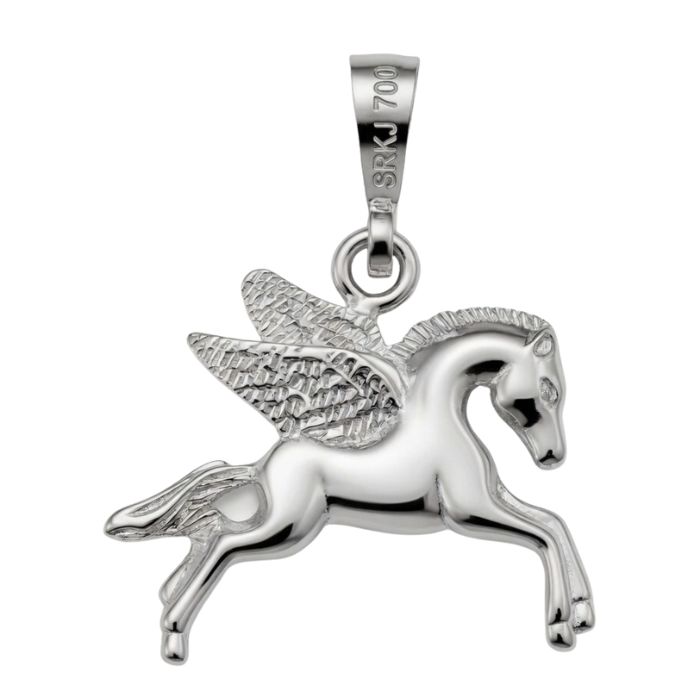 Enhance your style with this elegant SRK Jewelry Sterling Silver Flying Horse Pendant, symbolizing freedom, power, and positivity. Designed with fine detailing, this premium pendant features a beautifully crafted winged horse (Pegasus), giving it a unique and stylish look. Made from high-quality sterling silver, it offers durability, long-lasting shine, and a skin-friendly finish for daily wear.