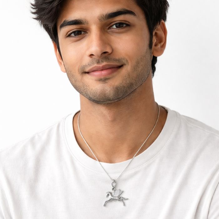 Stylish SRKJ Sterling Silver Flying Horse (Pegasus) Pendant, crafted with fine detailing and premium shine. Lightweight, durable, and skin-friendly—perfect for daily wear and a meaningful gift for men & boys.