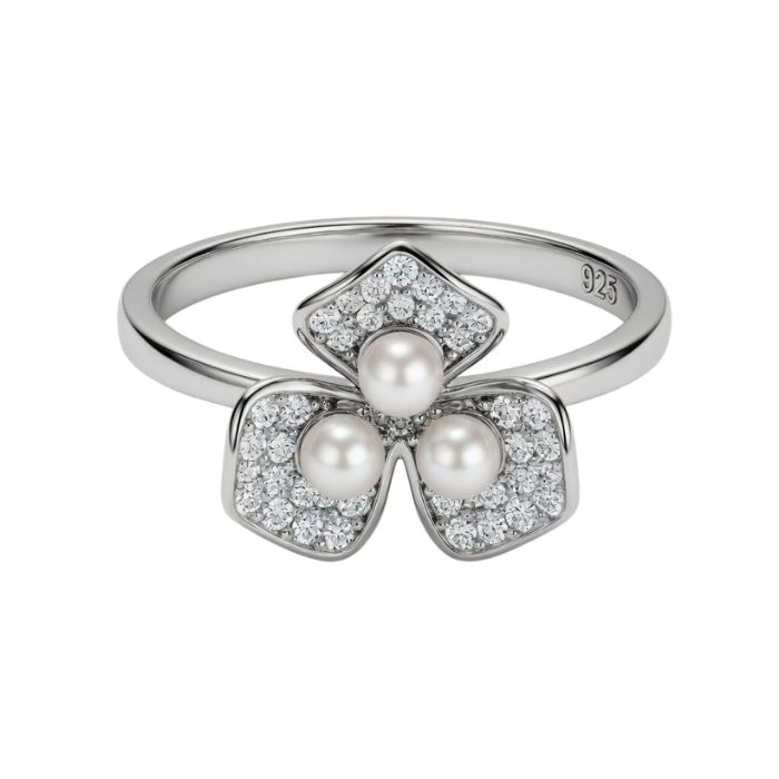 Elegant 925 Sterling Silver Jewellery Set with pearl flower design, including necklace, earrings, ring, and bracelet. Lightweight, stylish, and perfect for gifting.